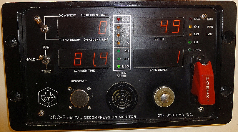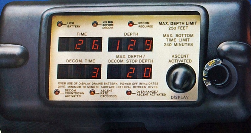 Damaliger Werbetext zum DDC: Zur Zeit ist der DDC der einzige Tauchcomputer der Welt, der analog zur US-Navy-Tabelle alle nötigen Werte sogar für Wiederholungstauchgänge liefert. Über gut ablesbare Digital-Leuchtdioden zeigt der Computer 10 verschiedene Werte an: - Tiefe, - Tauchzeit (bis zu vier Stunden pro Tauchgang), - Zeit nach dem Tauchgang, Die an der Oberfläche nach dem Tauchen verbrachte Zeit wird bis zu zwölf Stunden lang automatisch angezeigt. - maximal beim Tauchen erreichte Tiefe, |