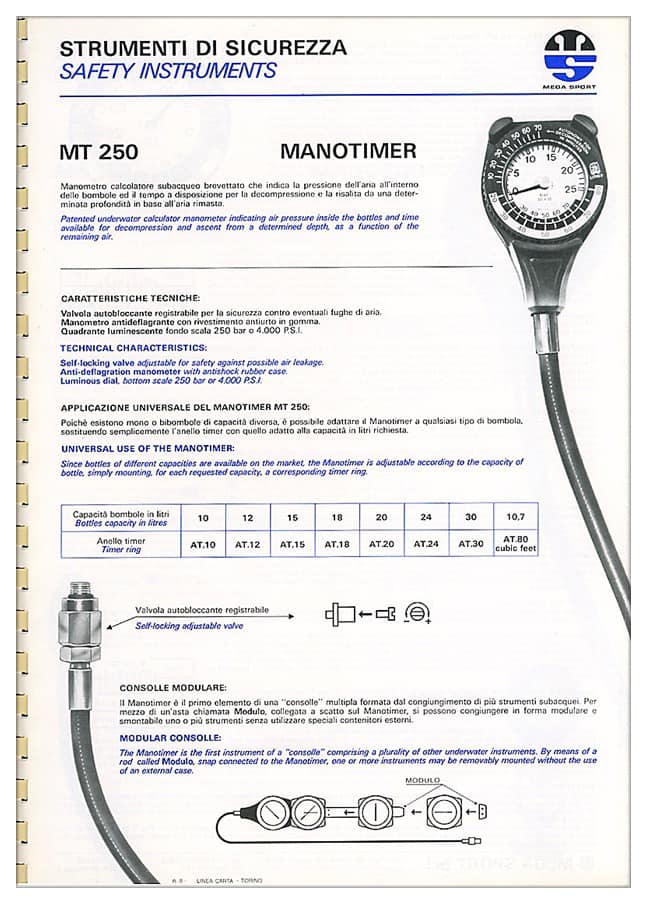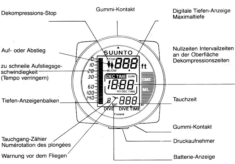 ![]() Der bezog bereits den Luftverbrauch mit ein (Schlauch zur 1. Stufe), konnte aber seltsamerweise keine Nullzeit-Tauchgänge verarbeiten, was den kommerziellen Erfolg doch stark einschränkte. |