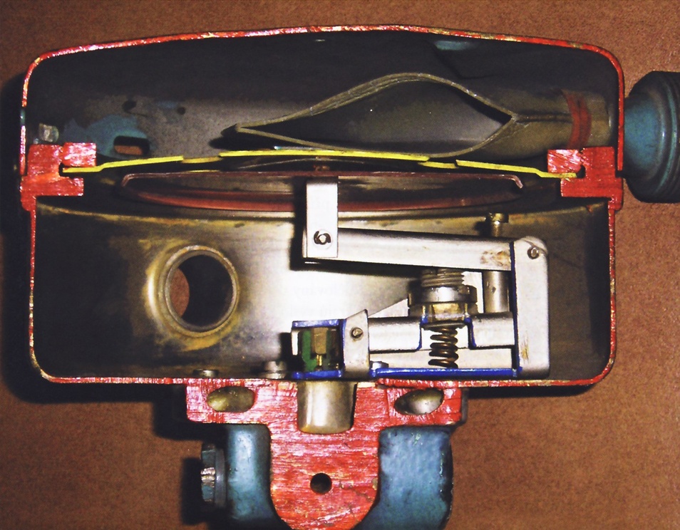 1 Gehäuseunterteil, 2 Sauerstoffflasche, 3 Druckminderer mit Zusatzventil, 4 Absorber, 5