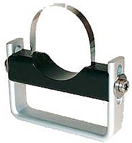 montiert). Es handelt sich um gebogenes Messing-Flachband 15mm x 2mm, das mit zwei Senkkopfschrauben nach oben in das Verbindungselement (aus PE) zum Lampenkopf zusammen gehalten wird. Der Ms-Streifen ist mit Schrumpfschlauch überzogen, so dass man die Salzwasser-Korrosion darunter nicht sieht. Mit dem Karabiner kann man sie bequem an's Jacket hängen, wenn man die Lampe nicht auf der Hand hat. |