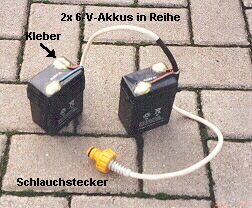 um dem abschließenden Heißkleber seine Form zu geben. Die Kabel werden mit Kabelbindern oder Edelstahl-Schlauchspannern um den Akku zugentlastet, damit die Kontaktstellen weitgehend kraftfrei bleiben. |