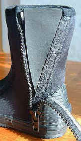 ![]() Da meine Wadenmuskulatur schon an den Fußknöcheln beginnt ;-), ich aber sonst auf sehr kleinem Fuße lebe, habe ich immer Probleme, Füßlinge mit genügend weitem Wadenschaft zu finden. In die 3-mm-Tropis quäle ich mich ja noch rein, aber bei den dicken 6-mm-Winterlingen, die jetzt mal fällig waren, mußte ich aufgeben, etwas Passendes zu finden, und zu Nadel und Faden greifen. Ich kaufte also ein paar Füßlinge, die zu meinen Damenfüßchen ideal passen, im Schaft jedoch mehr für Flamingos gemacht zu sein scheinen, aber einen außen aufsitzenden Reißverschluß haben. |