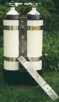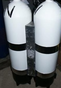 Einzelflasche 10l, Paket 2x7l, Paket 2x10l. Je nach Tauchgang (Dauer, Tiefe, Arbeit, Kälte,...) wird die Flaschengröße ausgewählt (4,7,8,10,14,20l). Alle Flaschenpakete haben zwei Edelstahlbolzen im gleichen Abstand (wie auch der Einzelflaschenadapter), auf die man die Blase und dann die Rückenplatte stecken und verschrauben kann. Es lässt sich in Sekunden trennen und zum Verpacken oder Füllen geben. |
