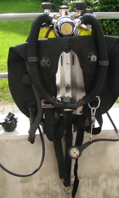 bisschen die Vorbilder. Die Flaschentrage mit Tarierblase (Wing) hat für mich entscheidende Vorteile, - die modulare Konfigurierbarkeit entsprechend dem anstehenden Tauchgang, - die "einstellbare" Schwimmlage unter Wasser, - die gute Gewichtsverteilung auf dem Rücken und - die Bauch- und Brust-Freiheit von bauschigen Jacket-Teilen so, wie das auch früher schon war (ohne Jacket). |