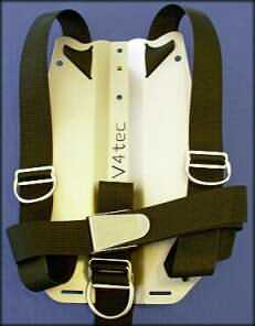 Leichtversion einer Rückenplatte mit "freier" Bebänderung | Backplate von OMS mit Bebänderung | V4TEC-Rückenplatte mit DIR-konformer Begurtung |