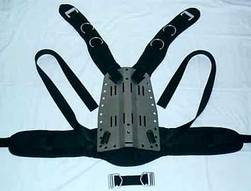 Komponenten sind folgende: - Rückenplatten aus Edelstahl oder Kunststoff, jeweils mit eigener Bebänderung, Die Kunststoff-Rückenplatte wird eigentlich nur für's Tauchen auf Flugreisen wegen des geringeren Gewichtes eingesetzt. Zu Hause kommt selbst das Doppel-4 auf die Stahlplatte, weil's einfach besser liegt und so weniger Ballast in die Gürteltaschen muss. |