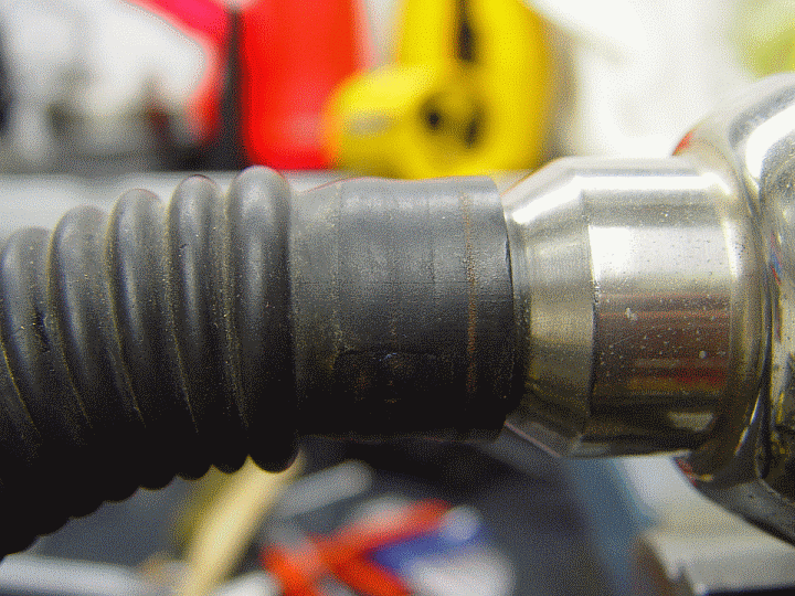 Man zieht innen ein Stück passenden Fahrradschlauchs ein. Der Faltenschlauch ist