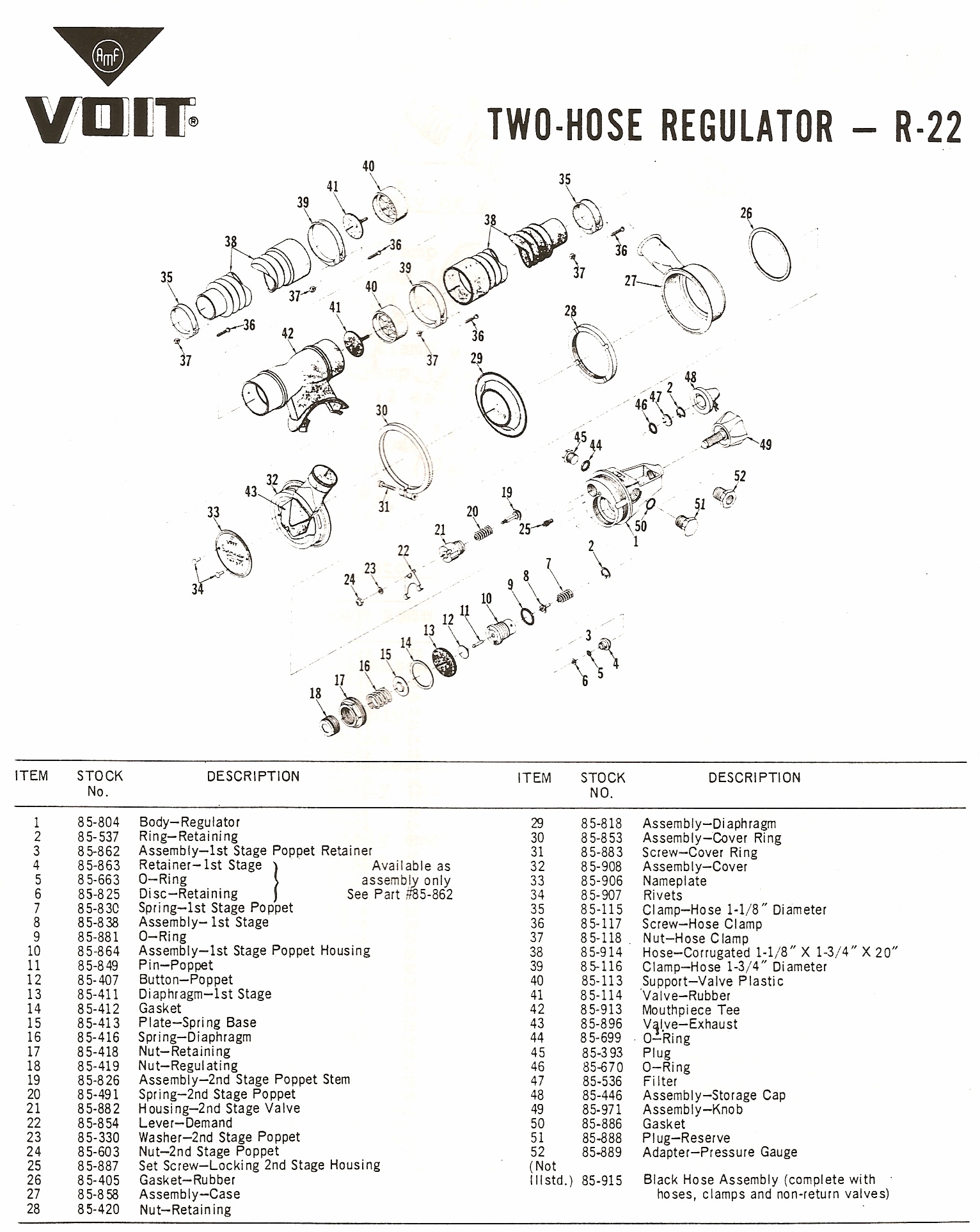 unten) bereits ab 1967, einem 1-Schlauch-Regler mit dem R22-Unterteil als erster Stufe. |