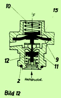 Ventilstein (Teil 12) wirkt, diese vom Ventilsitz abhebt, solange im Zwischendruckraum (9)