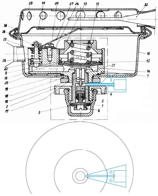 Der Gewindeport des Verteilers geht durch das Reglergehäuse (Loch 9,5 mm ohne Gewinde)