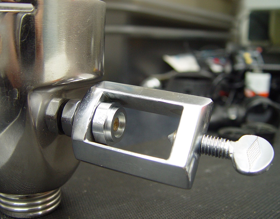 von 120° eingefrästen Schlitze gedrückt, wenn das Doppelport auf seinem Stutzen steckt.
