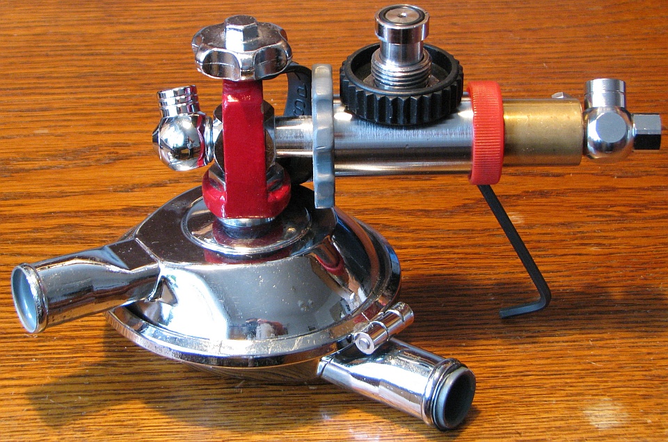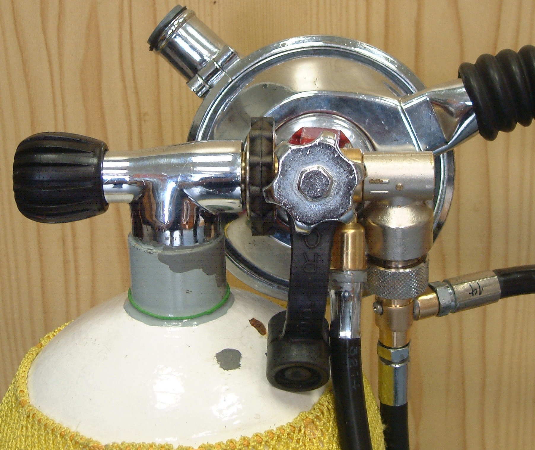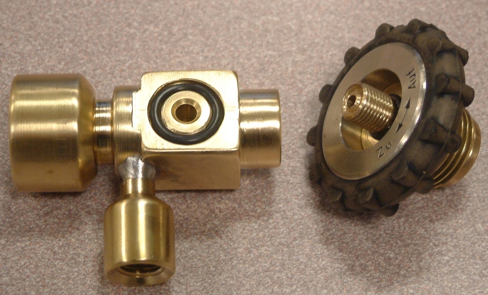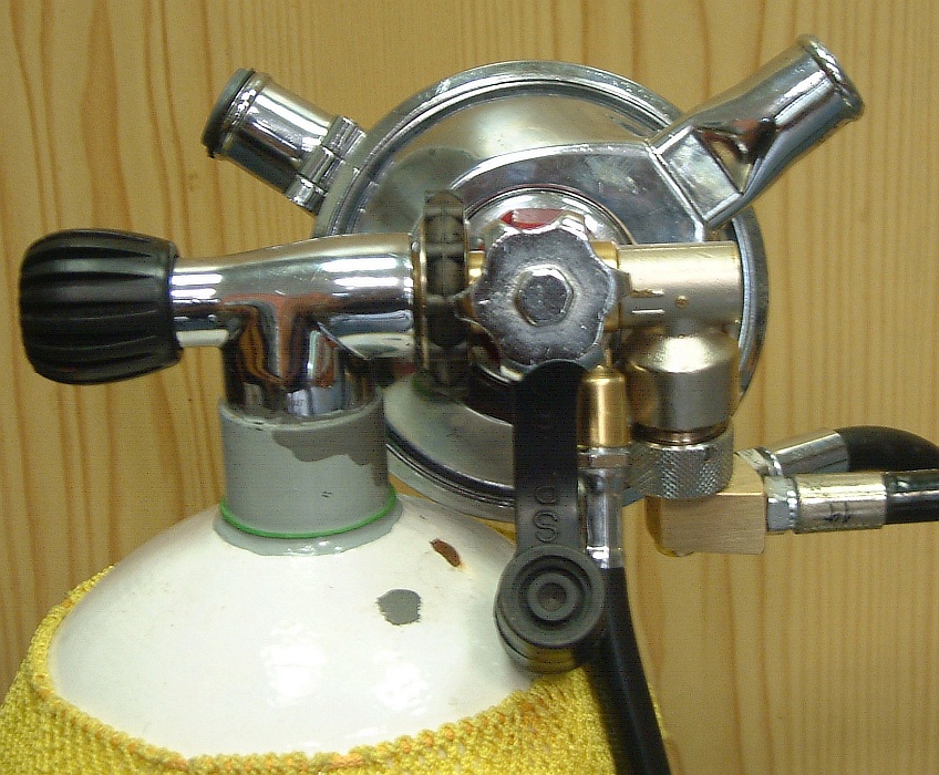 ![]() Da bei meinem D7 ein Ventil drei Abgänge hat, kann der Zweitregler dort angeschlossen werden, wo er weniger vorsteht. Eigenbau-Adapter für einstufige Regler |