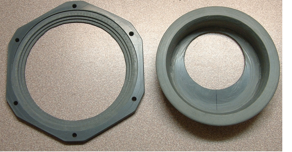 Erste Stufe des Voit R12 Titan II mit einem HD- und einem MD-Port und einem Anschluss für eine Reserveschaltung (auch HD), die haargenau dem Unterteil des Voit R22 Titan II entspricht, aber ungleich preiswerter (etwa 30 Euro) gegenüber dem Trieste II zu erhalten ist. | Gehäuse des Royal Mistral, das schön, leicht und kleinvolumig ist, trotzdem aber eine große Membran (125 mm) ermöglicht und maßlich einigermaßen passt. |